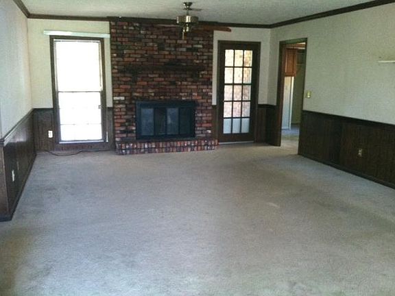 Spacious front porch and back yard !! Great room and a dining room. Kitchen with an electric stove and refrigerator. Central H/A. Screened in back porch. Outside storage. Fenced backyard.