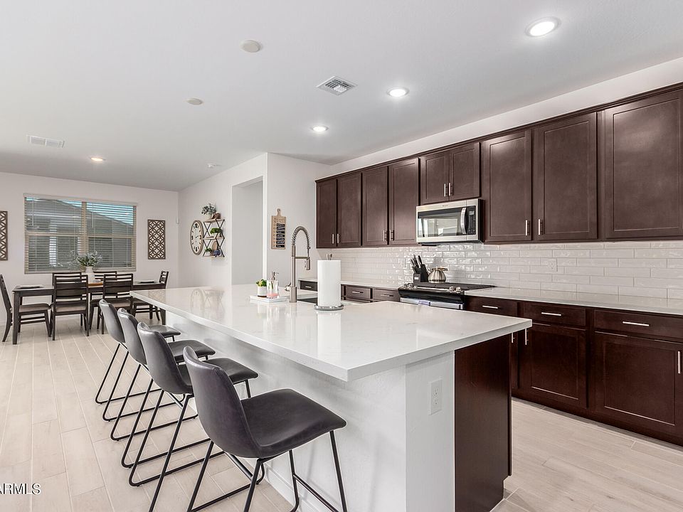 BETTER THAN NEW! This fantastic 4 bed, 2.5 bath residence now on the market is the one for you! Great curb appeal, easy-care front yard, a 3 car tandem garage, and a paver driveway will welcome you upon arrival. Inside you'll find a spacious open floor plan w/elegant wood-look tile flooring, recessed lighting, and neutral 2 tone upgraded paint throughout. Prepare delicious meals is this gorgeous kitchen, comprised of espresso cabinetry, quartz counters, subway tile backsplash, a walk-in pantry, stainless steel appliances, and an island complete w/a breakfast bar. The primary bedroom showcases soft carpet, a walk-in closet, and a pristine ensuite w/dual vanities and separate tub and shower. Laundry room features upgraded built-in storage cabinets and a convenient utility sink. The expansive backyard, w/its covered patio, artificial turf, and sidewalk that wraps around the entire yard for hours of scooting riding in your own backyard. This is the perfect place for outdoor cookouts w/friends and loved ones!