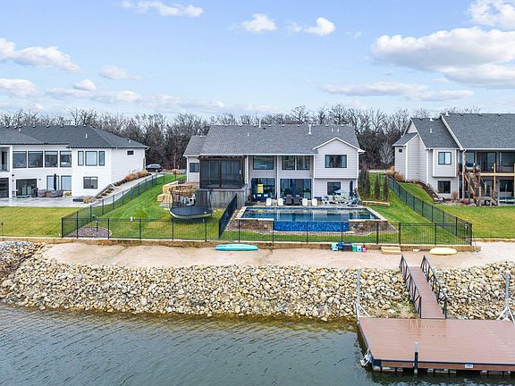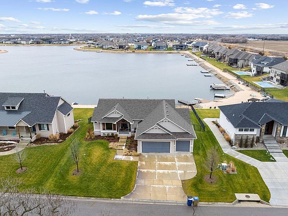See what lake life can offer you on this stunning lot in West Wichita! Located in the Sandcrest Addition, sits this stunning home complete with lake access and your own, LARGE private dock AND beach area. This property has been immaculately maintained and is ready for it new owners. The Sandcrest neighborhood offers many additional amenities as well including; A community clubhouse with a beachside fire pit, 2 swimming pools, children’s playground, pickle ball court, basketball court and soccer field. Walk up to the covered porch and inside to the welcoming foyer. Appreciate the natural lighting, tall ceilings, and hardwood floors. The living room features large windows and a cozy gas fireplace. The kitchen is open and bright. Enjoy the large island, quartz countertops, and stainless-steel appliances. Wander into the walk-in pantry filled with shelves for all your groceries, dishes, and smaller appliances. Don’t miss the cute coffee counter as well. The primary suite is stunning! The bedroom itself is spacious yet cozy with neutral colors and exposed beams. There are two walk-in closets! On to the bathroom with heated floors, a roomy, walk-in shower, free standing tub and two sinks. There are two other bedrooms and one full guest bathroom on the main level. Plus, a laundry room with storage cabinets, a folding counter and hanging rod. Just outside the laundry room is a drop zone for your shoes, coats, backpacks, etc. There’s another living area on the main level that leads out to the screened in deck. The views are simply stunning! Down to the light and bright basement where you can find even more space to entertain. The open space offers a family room, rec space, wet bar with a wine fridge and booth. There are two more bedrooms and one full bathroom in the basement. The ceiling to floor sliding doors open to your backyard oasis! Walk out to the large patio and the stunning, in-ground, saltwater pool with a beautiful waterfall feature, tanning ledge, built-in seating and umbrellas. Just a few steps further and you will arrive to your private dock and beach and the lake. No need for a summer vacation with this property! Swim, kayak, the possibilities are endless! This home sits just south of K-96 for quick access around town. New Market Square is just a few miles away for all your shopping and dining needs. If you’re looking for a fun outing, check out Sedgwick County Zoo just two miles away! This home has it all and the location is just the cherry on top. Schedule your showing now!
