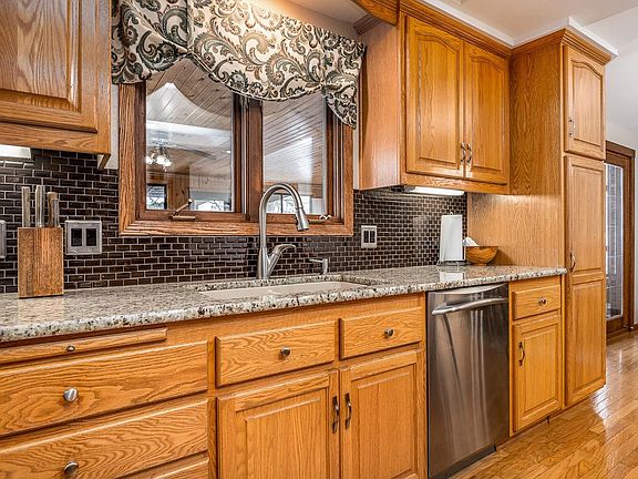 Brick ranch home on 93x167 lot, mature trees & nicely landscaped. Main level features 1925 sq ft and offers 3BRs, 2BAs, living room/family room with see-through fireplace, large kitchen w/ granite countertops, Dolphin custom cabinets, & built-in hutch/desk area. Dining room is included in Kitchen measurement allowing open concept & walks into a 20x22 3-season room & main level laundry. Lower level features family room & half bath. Main level garage measures 22x21 & has oversized 18’ door. Lower level garage has 12’ door & 100’ (est.) driveway. Lots of storage areas. Home has been very well maintained. Room measurements are approximate.