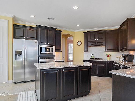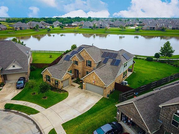 Fantastic Lake View in your backyard! Beautiful home features 5 spacious bedrooms/ 4 bath, sits on a large cul-de-sac lot! Kitchen boasts stainless appliances with, large center island and 42" cabinets that offer generous breakfast area and is open to the family room-great for family gatherings! Main floor offers primary and a secondary bedroom. Additional rooms include a spacious media room home office. Wrought iron staircase with catwalk overlooking family room. Upgraded 18" tile throughout main floor with plush carpet in the bedrooms. Home is both function and beauty with the following-*Whole House Generator* *Solar Panels**Upgraded Attic Insulation* *Upgraded Insulation on Perimeter Doors and Receptacle*. Over-sized Backyard with beautiful landscaping & hearty vegetable garden! Easy access to HWY 288. Zoned to Alvin ISD. A MUST SEE! Call today!
