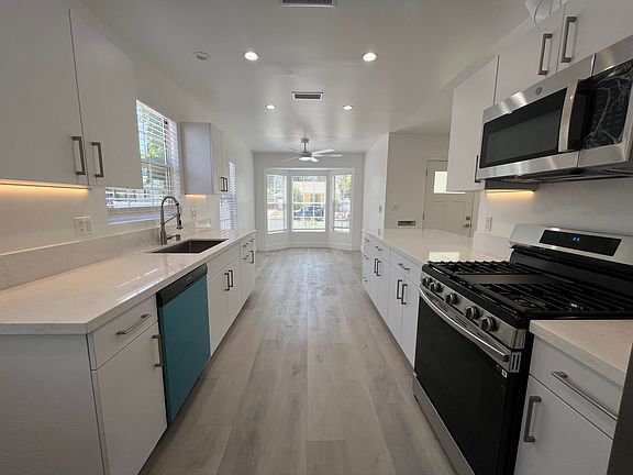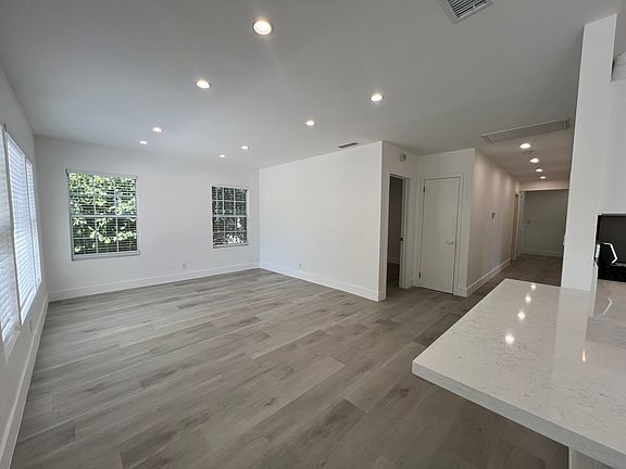 Welcome to your dream rental in the heart of Encino! Completely remodeled from top to bottom, this exquisite 4-bedroom, 2-bathroom home seamlessly blends modern sophistication with comfort and convenience. Freshly painted inside and out with luxurious vinyl flooring throughout, this property offers a bright, inviting atmosphere filled with natural sunlight. Step into the stunning kitchen featuring brand-new stainless steel appliances, sleek quartz countertops, and contemporary cabinetry perfect for both casual dining and elegant entertaining. Each spacious bedroom is enhanced by stylish modern ceiling fans, ensuring comfort year-round. Both bathrooms have been thoughtfully redesigned, boasting modern vanities, premium fixtures, and luxurious shower experiences. Convenience is further elevated with an in-unit washer and dryer, making day-to-day living effortless. Enhance your security and convenience with the innovative smart front door, allowing you to safely view visitors through its unique frost-to-clear window panel. From the sunlit living area and charming eating space to the easy kitchen-side yard access, every detail has been considered to enhance your lifestyle. The expansive backyard is a versatile blank canvas awaiting your personal touch ideal for al fresco dining, children's play area, or cozy evenings around a fire pit. Additionally, discover a fantastic bonus space a detached, air-conditioned studio (approximately 400 sq ft) featuring a spacious open layout, large storage closet, and full bathroom. Perfect for a home office, art studio, guest suite, or any creative space your lifestyle demands. This beautifully renovated Encino rental home is not just a place to live it's a home. Schedule your private showing today and start imagining your next chapter in this exceptional property!