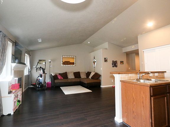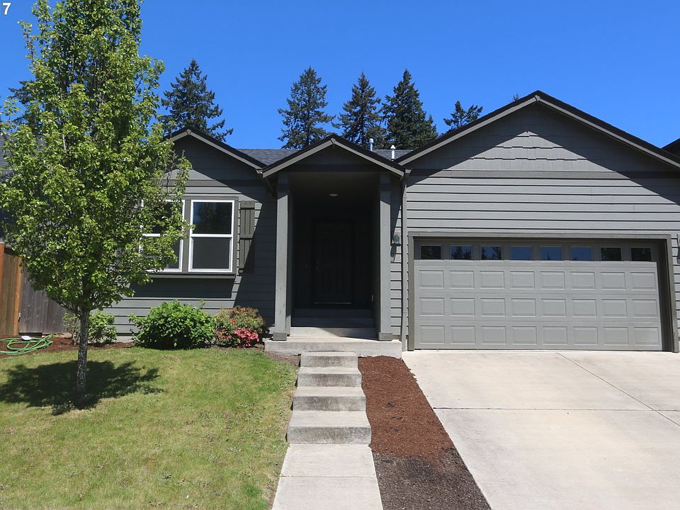 Wonderful Thurston home across from beautiful green space! Open floor plan with beautiful laminate wood floors in living areas & hall, gas fireplace, wide hallways. Kitchen has island with a breakfast bar, pantry, built-in microwave, lots of cabinet space & slider to back yard. Master bedroom with double closets and full bathroom. Built in 2012 this home is move in ready, waiting for you to enjoy!