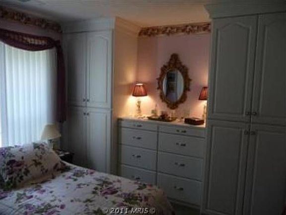This beautiful 1st floor unit has it all: An Open Floor Plan with 2 large bedrooms, each with a full bath, Second Bedroom w/custom bulit-in dresser/closet and a wall mounted TV, kitchen w/hardwood floor, Pergo/Foyer w/walk in Closet, Living Room and Dining Room also have Pergo Floors, Crown Molding and Custom Cornices and Shades. Beautiful Wooded Views.