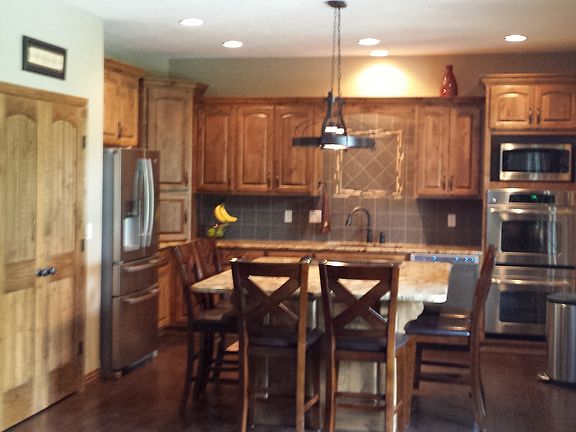 Two year old Custom built home sitting in on a double lot in Prarie View Heights. Beautiful dark hand scraped wood flooring throughout the home. Plush neutral carpet in bedrooms and basement. Large walk in closets in all bedrooms. Knotty Alder cabinetry. Granite and marble in kitchen and bathrooms. Stainless steel kitchen appliances. Attic fan. Huge 800 square foot room for a large office, theater room, work out area or mother in law quarters. Extra large master bed/bath/closet. Storm shelter in basement. Lots of storage. Over sized and deep 3 car garage. Heating/cooling units on 3 separate zones. Ceiling fans in all rooms. Large covered deck. Neighborhood pool and trash service. 10 X 10 storage shed. Sprinkler system. Alarm system.