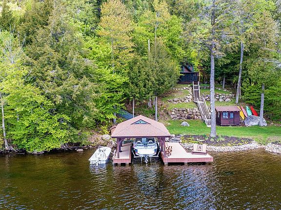 Enveloped in privacy, this beautiful estate is reminiscent of the great camps of yesterday. Set on 4.91-acres, w/rarely attained 311-ft of Fourth Lake waterfront, this compound echoes true ADK living. Enjoy three separate waterfront parcels, including two private, 3-season cottages plus a vacant lot between them w/sweeping lake views and mountain landscapes. Warm living/dining areas w/Douglas Fir wood flooring, front screened-in porches that showcase beautiful lake frontage, and private shorelines with docks: one w/a newer covered boat slip. Between both homes there are 5 BRs with space to accommodate  20+ guests. Turn-key and move in ready. A unique spot like this on the Fulton Chain doesn't come up often. Located within walking distance to The Great Pines and the amenities of the Greater Old Forge area.