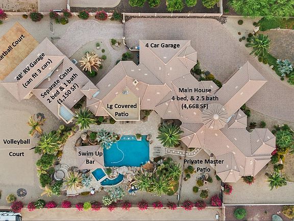 THIS IS THE MOST INCREDIBLE PROPERTY ON THE MARKET RIGHT NOW!!! Pure TUSCAN Luxury At It's Finest!! FULLY CUSTOM BUILT, ALL high end finishes throughout! Unimaginable Resort Style Backyard, BETTER than any Rocky Point Resort! Colossal sized pool (gunite coated, will not crack) with a grotto, swim up bar, outdoor pizza oven, sand volleyball court, basketball court & 2 bed/1bath CASITA (perfect for guests or Mother in Law)! 4 car garage in the main house + 48' RV GARAGE!!! BRING ALL YOUR TOYS (Boats, RVs, ATVs)!! ALL BRAND NEW HVAC UNITS in 2020 (valued at $25,000)! Smart Home Fully Equipped with Control4 System & 6 security cameras! Just MINUTES to 500 Club Golf Course, Six Flags Hurricane Harbor, Thunderbird Conservation Park Hiking Trail, Highway 101, and so much more!!