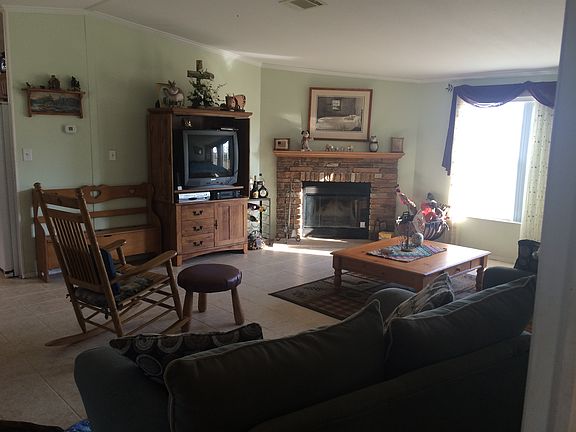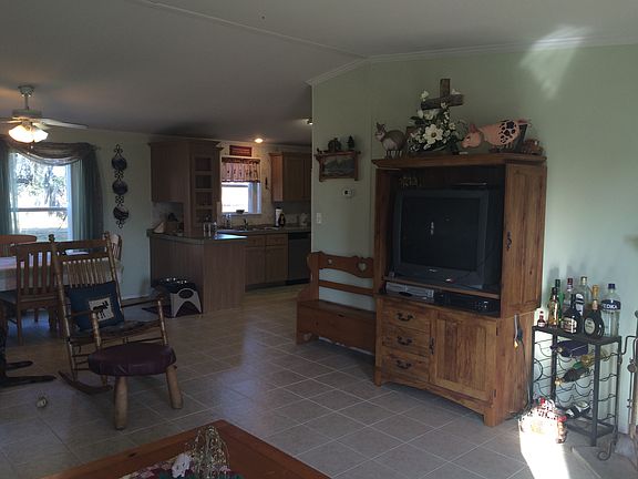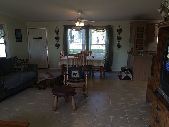 Escape to the peacefulness of the country on this 5+ acre property with an oak canopy and water view. Home has a large great room with kitchen perfect for entertaining! Split floor plan, master has large bathroom with dual sinks, garden tub, separate shower and walk-in closet. Corner wood-burning fireplace in living room is perfect for relaxing on cool nights. Model was extended three feet to increase the size of third bedroom. Drywall upgrade in living/dining area. New back steps and decking leading to utility room. The property is crossed-fenced to surround the home and driveway. Has detached covered parking for two cars.