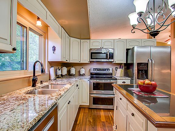 Welcome to this stunning home located in the highly sought after Old Farm neighborhood. As you enter the home you are greeted with an expansive living room/dining room with vaulted ceilings. The gorgeous kitchen is a cooks dream featuring custom antique white cabinets, rod iron balusters wide plank floors, slab granite and stainless steel appliances including a double oven. The lower level family room boasts a large wood burning fireplace and updated bathroom with designer features and walks out to the expansive, private back yard. The large rear patio has a hot tub and plenty of room for seating and cookouts, the mature trees allow you to enjoy the space in privacy or access the huge Old Farm park through the gate in the fence. A large shed is the perfect place to store items so the garage will stay uncluttered. The second story has a large master retreat with updated bathroom, two additional bedrooms and updated full bathroom. The basement boast additional living space or a second master/in-law suite. Do not miss this wonderful home in this great neighborhood!