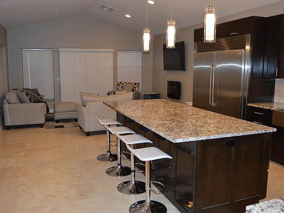 Beautiful home in quiet upscale neighborhood, freshly remodeled & painted; Mountain views;Vaulted ceilings; Dramatic Entry; Custom pool, Living Room, Full Dining Room, Open floor plan; Travertine Tile; new cabinets, Granite counters, 2 AC zones; Spacious private yard; Covered Patio.