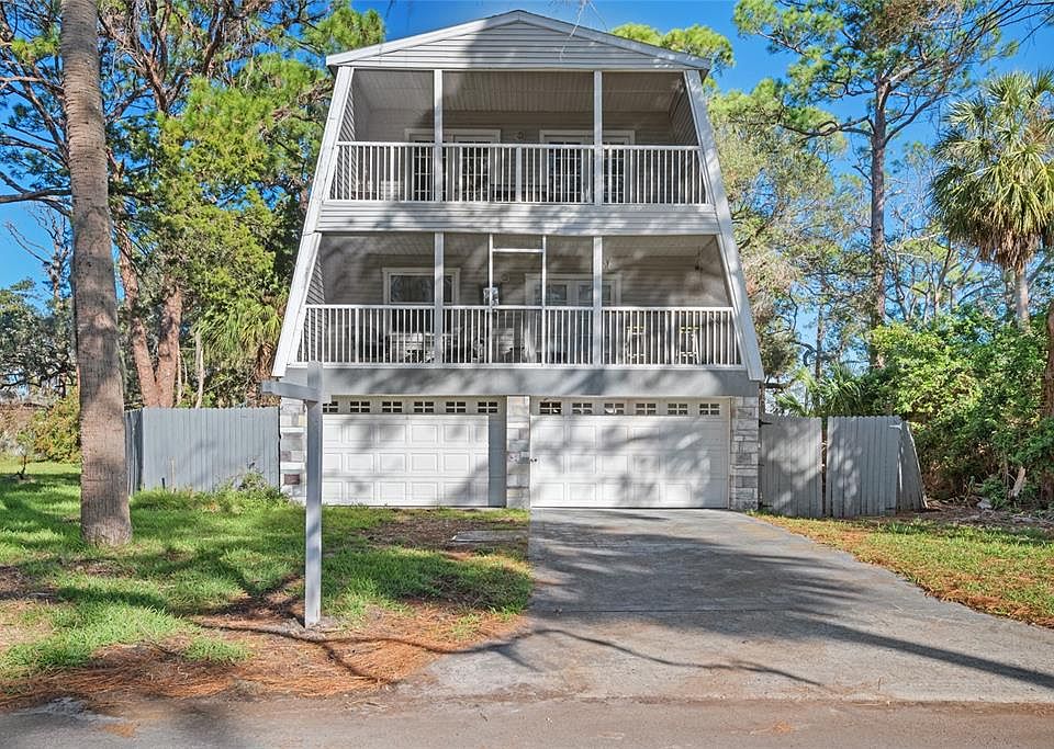 This 2-bedroom, 1.5-bathroom, 2-car garage home, located in a highly desirable area close to all amenities, offers endless potential for customization. The thoughtfully designed 2-story layout features bedrooms on the second floor for added privacy and screened porches on both levels with great views. On the first floor, you’ll find the kitchen and a spacious floor plan ready for your personal touch. The backyard features , a large oversize shed with electricity and AC window unit offering versatile space for an office, game room, or bonus area. While this home needs some updating, it provides a solid foundation to create your dream home or investment. Conveniently situated near Gulf Coast beaches, marinas, shopping, and dining. This home is priced to sell fast and offers a fantastic opportunity to invest in a desirable area. Schedule your showing today and imagine the possibilities!