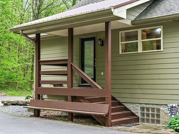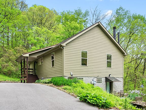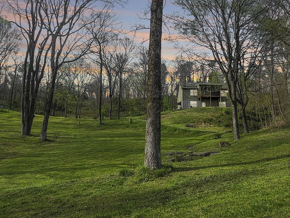 Welcome to your own private nature-lover's Tennessee oasis. Over 25 rolling acres, mostly wooded, with year-round pond and several hiking or off-roading paths and pasture space. One path leads to a bottom land that is set up as a rustic camp w/small cabin, outhouse and campfire space overlooking a stream with bridge. Set-up for multi uses with additional water taps and electric in place, rv parking area, sheds, chicken coup, feed and firewood storage. Charming hillside home with main floor primary suite, renovated kitchen and laundry area, open living space with lots of natural light and serene views of the property. Walk-out basement with full bath, kitchen and three bedrooms/flex rooms with closets. Front, side, and back covered porch/balcony are perfect for relaxing with the sounds of nature, as cascading stream runs beside the home. 1 hr from Nashville, Bowling Green, or Dale Hollow Lake. 12 mins to Downtown Lafayette with shops and restaurants. Approx 2 hr drive to Fort Campbell
