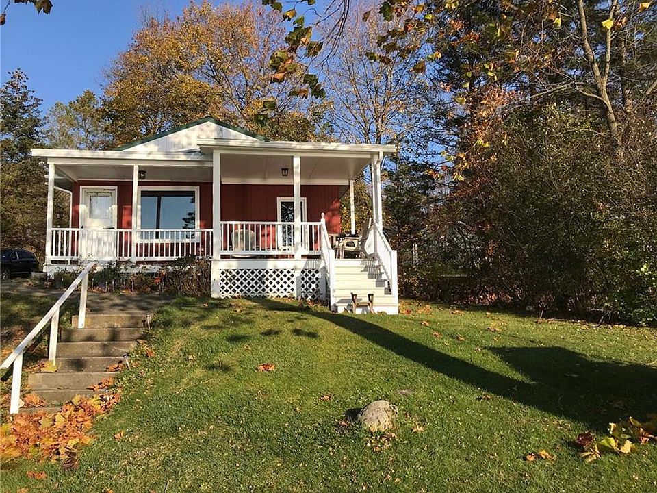 Level frontage on Owasco Lake at an unbelievable value! Drive down the newly paved blacktop driveway alongside the running brook and take in the stunning view. Seasonal cottage with many newer features including a new metal roof in 2013, bedrooms that were renovated in 2014, some new windows in 2016, and public water and sewer connected in 2016/2017. Spend your evenings in this charming bungalow, sitting on your spacious front porch watching the gorgeous sunsets over the water. Don't let this one pass you by!