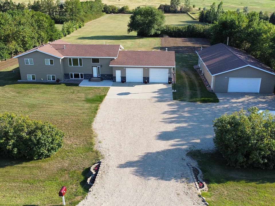 Welcome to this beautiful custom built 3.23 acre home waiting for you to move in. Surrounded by mature ash trees and lilacs, this 2900 square foot home has country living just on the edge of town. The upstairs has new flooring in the kitchen and living room along with vaulted ceilings. Three bedrooms upstairs with one of them being the primary with primary bath and walk in closet. Down stairs you have an office area and family room with new floors and trim work, along with workout room and you being able to make the final touches on flooring and trim along with picking the finishes on the bathroom. You also have one more bedroom and laundry room/mechanical. This home comes with a large two stall attached garage along with a 60 by 30 foot shop, 25 feet of which is heated. the back yard has a built in fire pit and beautiful area to relax and enjoy and is wired for a hot tub. It comes with two gardens and has four apple trees. Don't miss this your chance at this home! Sellers are related to sellers agent.