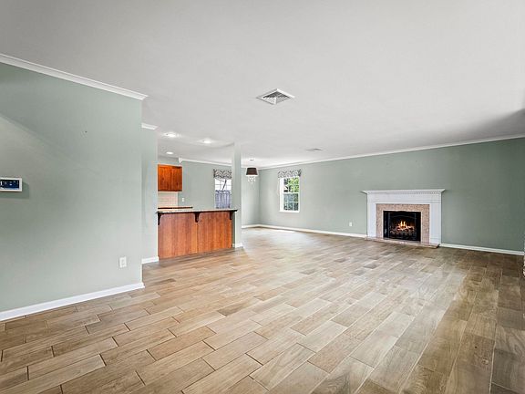 Beautifully updated home in Woodhurst, including engineered wood plank flooring in the bedrooms, Living Room and hallway. Stylish Ceramic tile in Family room and kitchen. You will love the stainless-steel appliances- Refrigerator, range, dishwasher and microwave. Granite countertops with subway tile backsplash, newer cabinets (with pull out trash can/recycle) in the kitchen which opens into the Family room. A beautiful gas log fireplace gives a cozy comfortable atmosphere. Bonus mud room into the back yard, plus a breezeway/sunroom going from the garage into the house. There is a 1/2 bath for guests and a 1st bedroom ensuite, plus a hall bath for extra family members. Updates include all bathrooms, newer windows, new roof in 2022, Furnace in 2016, hot water heater and patio door new in 2017, Plus a newer stenciled concrete driveway. New black iron gas line installed in the attic. Furnace serviced with Rolf Griffin thru August. All you need to do is move in. Lawn Service paid for the rest of this mowing season.