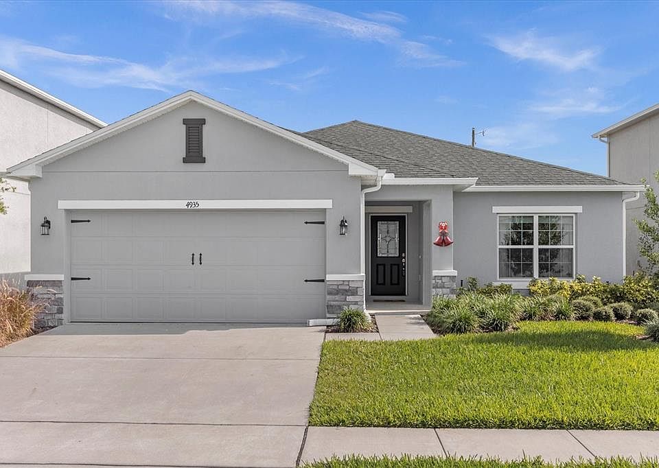 Welcome to the community of Tierra del Sol. This 3 bedroom and 2 bathroom home has everything you need. Built in 2021, this home offers an open layout, split bedrooms, indoor laundry room, modern kitchen with white quartz countertops, screened-in back patio, fenced-in back yard, irrigation system, gutters and upgraded front door. As you walk inside you will have tile throughout the main areas and carpet in the bedrooms. The master bathroom has been renovated with a large shower and modern tiles. Its location is phenomenal with close proximity to major highways, grocery stores, shopping and Disney World. Make this home yours today!