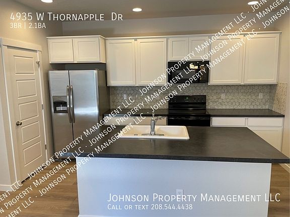 Experience the grandeur of this exceptional rental located at 4935 W Thornapple Dr in the beautiful city of Meridian, ID. The great room will truly captivate you with its east-facing backyard, allowing for stunning natural light streaming in through the abundance of windows and soaring 12' ceilings. The sizable kitchen is a chef's dream, boasting Bosch appliances, a convenient double-oven, and an impressive 12 ft kitchen island perfect for culinary creations. Indulge in a spa-like experience in the master bath, providing a welcome retreat from the hustle and bustle of daily life. As an alternative to paying a traditional security deposit, we are pleased to offer the Zero Deposit Program which allows residents to lease properties with zero security deposit. Instead, residents will pay $45 monthly in addition to rent and amenity services, to avoid paying a traditional security deposit. See website for details. $50/month amenity pack includes: A/C Amenity No Application Fees Amenity Air Filter Service Amenity 24/7 Emergency Maintenance Amenity Credit Builder Program Amenity Free Eft Rental Payments Amenity Late Fee Protection Amenity Maintenance Protection Amenity Pest Control Amenity Pinata Rewards Program Amenity Pre Rent Sanitize Per Cdc Cat Ok Common Area Maintenance Included Disposal Dog Ok Flexible Rent Payment Option Fridge/Stove Garage Garage Attached Gas Central Furnace Granite Countertops Heating Forced Air Large Closets Lawncare Included On Street Parking Pressure Irrigation Available Shared Yard Small Pet Ok Under 25lbs Vaulted Ceilings Washer/Dryer Hookups Zero Deposit Option Available