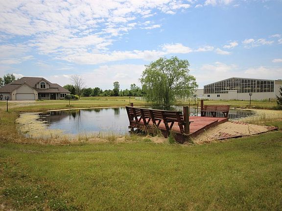This is an Online Auction Only ending Thursday, July 13th @ 3:00 pm and Open House will be on Thursday, July 6th from 5:00 - 6:00 pm and Sunday, July 9th from 1:00 - 2:00 pm. Auctioneer reserves the right to make changes to an auction, to split or combine lots, cancel, suspend, or extend the auction event. This property may sell at, above, or below listed price. Walk in to this rolling 5 acre estate and enter into your equine dream. A 14,000 sq/ft insulated arena barn will be your stage for riding horses all year round, with 18 foot side walls, 2 tack-up areas, an over-sized tack-room that can accommodate a bar, sitting area or kitchen . Walk your horse into the adjoining stalls, where they will enjoy the comforts of automatic waters, matted stall floor, and a 3 foot deep frost wall to keep the ground from freezing in the winter months. During the summer months, enjoy the 8 paddocks and outdoor arena. Take your horse out on a warm summer morning to test your mettle on a full jumper course atop rolled clay and 4 inches of sand. Not too far away, a storage barn holds hay and all of the large equipment needed to care for your lovely beast. Relax at the end of a day of riding out by the scenic pond with automatic lighting. The end of the dock drops off into 21 feet of serene blue water for a quick dip to cool off. And the best part is, you wake up from your dream and start your dream day! A 2,200 sq/ft home is built right on the premises! A pristine foyer welcomes you and flows into the living room, with volume ceilings and a stone faced fireplace. Large picture windows facing south provide an abundance of natural daylight. The family room's open concept opens up into the beautiful kitchen, the gourmet's delight. The main floor master suite has an exquisite tiled shower and spacious closet for storage needs. The loft looks down on the family room and really accentuates the open concept of the house. Two bedrooms upstairs, and a full bath make this area great for housing loved ones and guests! This home is a must see to be fully appreciated!