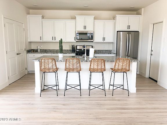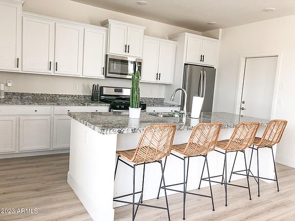 This is the perfect home with the perfect location! This was the primary model home for this development with all the upgrades! Home boasts desirable corner lot location with common area next to park. Home features unlimited upgrades including three good size bedrooms, one is considered a mother-in-law suite with separate exit and private bathroom area located downstairs. Nice open floor plan with large kitchen island and SS appliances open to great room, beautiful natural sunlight everywhere. Downstairs powder room has a custom wall of tile! Upstairs features large extra bedroom and full bathroom, including large loft area with sliding glass doors exiting to private upstairs balcony patio with beautiful outdoor fireplace and unlimited views! Laundry room upstairs with washer an dryer conveying to new homeowner. Double doors greet you into the master suite with a gorgeous double sided fireplace that splits the master bedroom with sitting area, master bedroom area supports large king size bed with plenty of room beautiful upgraded tile in master suite bathroom with a huge walk-in closet. Home also features outdoor grilling area with pavers and artificial turf. Three car tandem garage featuring epoxy flooring with additional garage door leading to the backyard! Builder did not hold back on this property with upgrades seen everywhere including upgraded stucco finish and upgraded elevation package. Don't hesitate. Welcome to this gorgeous California style Arizona home!