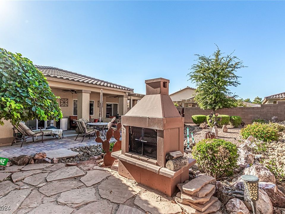 Wow! Look at this lovely single-story residence in the desirable Mountain Falls! The delightful spacious great room boasts high ceilings & tile flooring, creating an open atmosphere perfect for relaxation. The gourmet kitchen features granite counters, pendant & recessed lighting, paneled cabinets, sparkling SS appliances, tile backsplash, & a versatile island w/ a breakfast bar. The home includes a versatile den, perfect for a media room. The main bedroom is a serene retreat, complete w/ soft carpet, backyard access, & a private bathroom w/ dual sinks. Relax in the backyard, where you'll find a covered patio, a cozy outdoor fireplace, a fire pit, & a low-maintenance desert landscape. The Community offers exceptional amenities, including pristine golf courses, a relaxing pool & spa, workout facilities, a recreation center, & a tranquil environment. Schedule a tour today & experience the best of comfortable living!