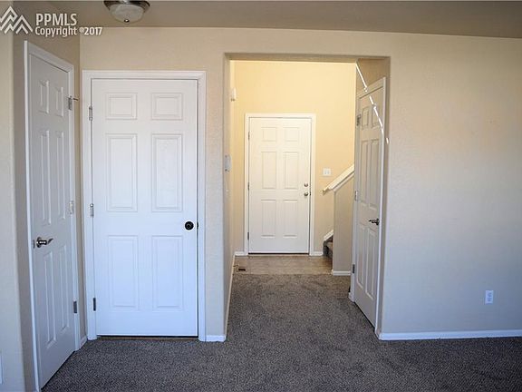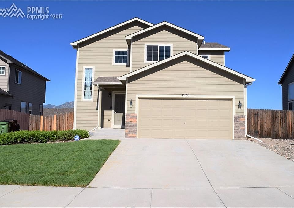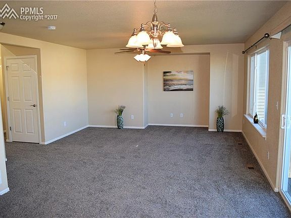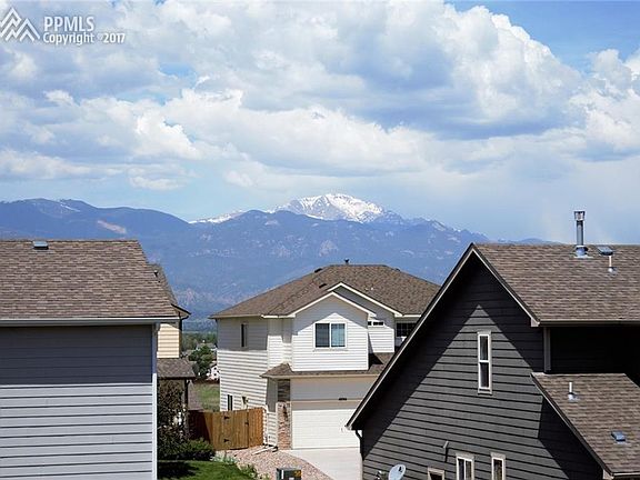 Killer view home in Painted Sky at Waterview. Rear of home faces due West and this home has an awesome walk-out lot. From the deck you've got views of Pikes Peak and the front range. Huge level back yard fully fenced. New carpet throughout the home. Central Air to stay cool all summer. Smart 2 story floor-plan with very open main level. Unfinished walk-out basement ready to finish if you wish. Very close to Perterson AFB, Ft Carson, and all the shopping that the Powers corridor has to offer. Clean and ready to move in. Master bath has too sinks, oversized tub and flows into a large walk-in closet. Laundry is on the upper level. 2 Car attached garage with opener.
