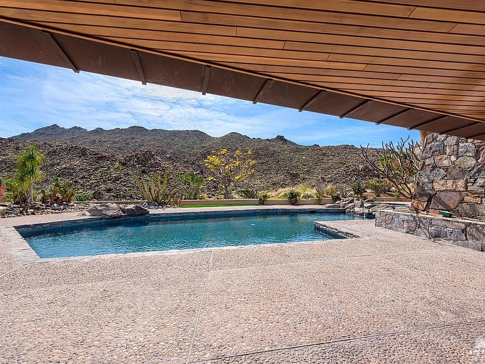 Limited Time Offer at This Incredible Price! Don't Miss out on This Great Opportunity! Elevated View Estate at The Highlands of Ironwood Country Club! Designed by famed California architect Robert Altevers, this spectacular steel-framed iconic masterpiece showcases fine crafted natural materials in vaulted ceilings of imported red cedar, custom mahogany cabinetry, and walls of hand-inlaid stone. Sliding glass walls merge the striking contemporary interiors seamlessly with dramatic desert landscaping. The spacious outdoor living area is situated around the sparkling blue mosaic-tiled pool and spa with panoramic southern views overlooking the Santa Rosa Mountains and the 15th fairway and green of Ironwood Country Club's acclaimed North Course. This unique estate offers that rare combination of privacy, views, and style. A golfer's getaway, a family retreat or an entertainer's delight, this property has it all.