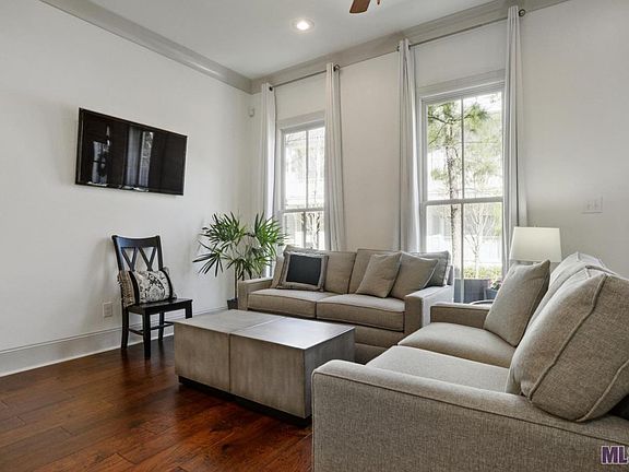 Better than new has never been truer than when you see this home in Rouzan. Beautifully cared for by the seller makes it extra special. Freshly painted with a soothing neutral color fits everyone's palette and the open floor plan with high ceilings and crown molding is just what everyone is looking for. Wood floors are throughout the first floor living area. Tile floors in laundry and bath. The kitchen features a 5 burner gas cooktop, stainless appliances, and solid granite countertops with glass backsplash. The second floor also has high ceilings, two bedrooms, a bath, and a landing large enough for TV, play area, or office space. Off the second floor is a very nice balcony overlooking the front yard. Maybe the best part is the location of this home in the subdivision, on a corner lot with side yard that lets the East sun shine into the home with a view of trees across the alley. The subdivision's location is right in the middle of town with easy access to shopping, schools, the BREC park and walking path, LSU and much more. Within the subdivision residents have access to a beautiful pool, clubhouse, community garden, and neighborhood activities. Don't miss this opportunity to live in this home!