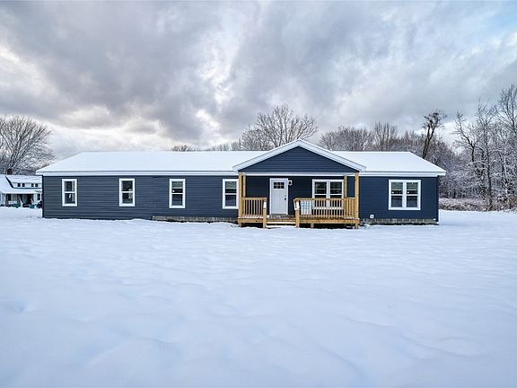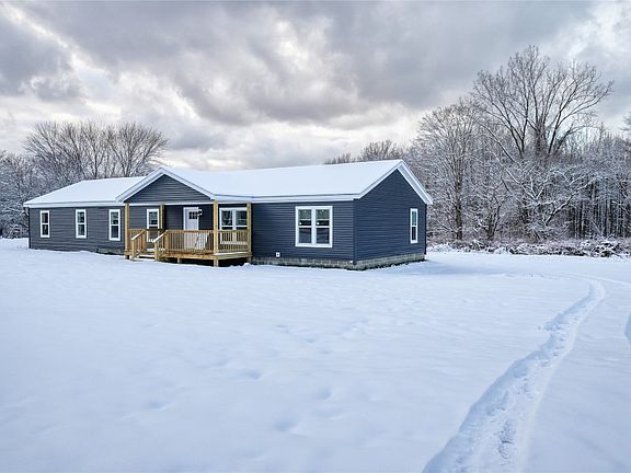 Newly built, this beautiful 3-bedroom, 2-full-bath manufactured home sits on a spacious 1-acre lot and features an over-sized 1-car attached garage. The inviting open floor plan includes an eat-in kitchen with stunning cabinetry, attractive countertops, a tiled backsplash, a center island, and stainless steel appliances. The kitchen flows seamlessly into the dining area and living room, creating the perfect space for everyday living and entertaining. The primary bedroom offers a walk-in closet and an ensuite bath complete with dual sinks and a spacious shower featuring a relaxing rain shower head. Beautiful flooring and stylish light fixtures run throughout the home, adding warmth and modern appeal. Enjoy quiet mornings or peaceful evenings on the covered front porch, and make the most of the outdoors with sliding doors from the dining area that lead directly to the backyard. This property blends comfort, quality, and contemporary design in an ideal rural setting.