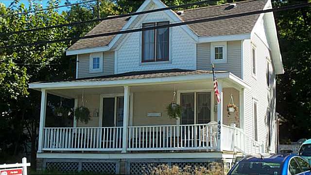 This might as well be a waterfront property without the high price. Across the street from the Lake with a breathtaking unobstructed lake view plus a 10 foot deeded lake access. Year round and loaded with charm,natural woodwork,high ceilings in large great room, front porch. 1st flr laundry,gas heat except 2 bdrms are elec. Private backyard backs to woods.