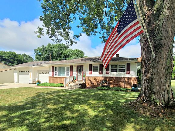 Welcome to this wonderful well-maintained 3 bed/1 bath ranch. There's plenty of parking and storage w/an oversized 2 car garage. The large corner lot has a fenced yard and 12x20 shed. The living room has a picture window for natural light, coved ceiling, and new vinyl plank flooring. All appliances stay in the oak eat-in kitchen. A new slider off the kitchen provides light and is perfect for entertaining guests on the deck. The main level has 3 bedrooms w/vinyl plank floors and ample closets. The bathroom has been updated with a vanity, lights, mirror, toilet and a barrier-free tub that converts back into a full tub! The lower level has a spacious family room, 2 bonus rooms, and laundry w/ washer/dryer that stay. Also includes reverse osmosis system, freezer, and extra refrigerator. storage and laundry with washer/dryer that stay. With new paint, flooring, ceiling fans, doggie door, new kitchen slider, and extra freezer and refrigerator staying, this home will not last long!
