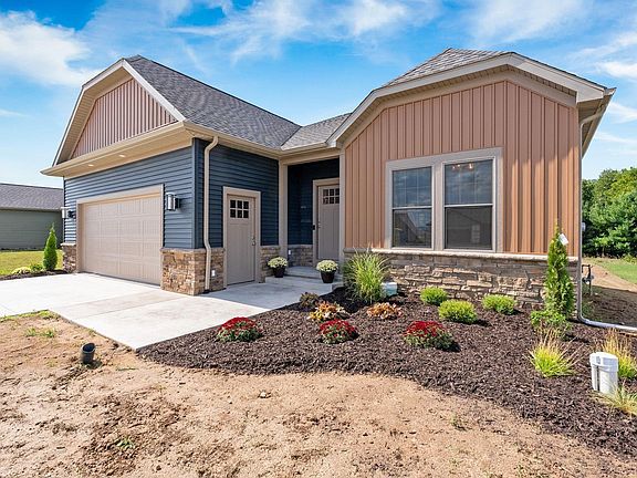 Seller offering 1% buydown incentive!! Elegance, refinement & class—this state of the art ranch features high ceilings, large open concept, split bedroom floor plan with full daylight basement awaiting your design choices & spectacular back deck with peaceful country views! Did we mention it’s new construction!? Stunning new build completed in '24 by B&B Home Builders with obvious quality craftsmanship & attention to high end & on-trend details including 9’ ceilings, walk-in closets, gorgeous wood panels, professionally landscaped yard & Ring door bell/camera to keep you safe. Located far enough away to give you the peace & quiet you’ve been wanting without the hassle of super long drive (Warsaw & CC are 20 some mins away, North Webster 5 mins), in premier Oakland Hills subdivision not far west of SR13, this 3 bedroom, 2 full bath home has lots to love & much to offer, plus basement is framed & plumbed for potential 4th bedroom & 3rd bath. Sure to charm from the moment you arrive, attractive mixed material exterior presents curb appeal with a modern aesthetic, and oversized attached 2 car garage. Inside the front door you’ll find a bright & welcoming atmosphere complemented by luxury vinyl plank flooring & crisp white walls, with elite decor elements adding character & ambiance from the fashionable lights down to the hardware! Foyer connects to hall leading back to main living space with kitchen, dining & great rooms combined with wall of windows providing plenty of natural light & serene nature views. Chef’s delight kitchen has abundant custom cabinetry, pantry, SS appliances, quartz counters & central island with seating. Dining nook in front of sliding glass doors to walk-out deck for meals with a view—ideal for entertaining! Generous primary bedroom off foyer has tray ceiling with chandelier, white panel accent wall & ensuite with stylish vanity, walk-in shower & walk-in closet with built-ins. Remaining 2 bedrooms are both comfortably sized & in same hallway as main shared full bath with tub/shower combo. Main level laundry room by primary bedroom completes first floor. Unfinished basement contains tons of storage space & so much potential! It's ready to be finished as desired—would make an excellent 2nd living/family/rec, etc. Back deck overlooks expansive yard stretching back to tree-line, affording some privacy & zen-like environment. Ample room for all kinds of outdoor fun & activities. Don't miss this amazing opportunity—reach out today!