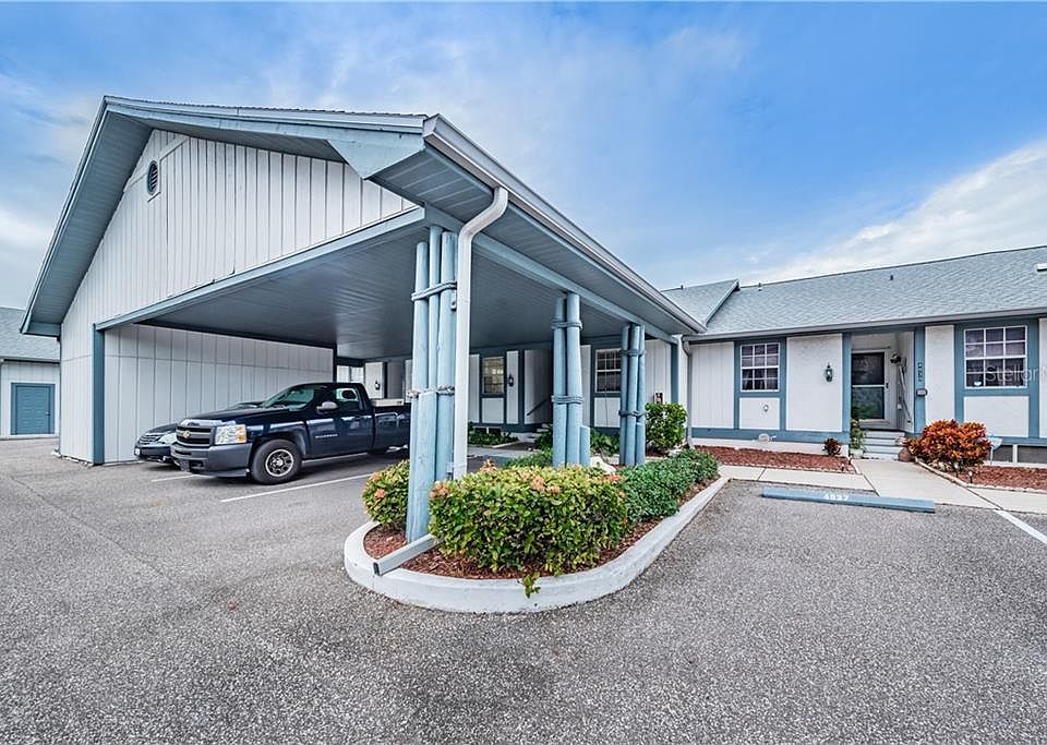 Rarely do any of these condos come available. Open floor plan with high ceilings and a split layout plan. Villa style with no one above or below you. In unit washer and dryer is so convenient. Covered carport just outside your door, 5 X 10 storage closet & screened lanai too. Great proximity to all conveniences, walk to Publix & Cracker Barrel. Optional Gulf Harbor Beach Club gives you access to the private beach directly on The Gulf Of Mexico. Swim with the dolphins, sunbath on the beach, watch the sunset, BBQ beachside, enjoy Florida living at it's best! Condo fee includes flood insurance. Don't miss your opportunity to own in this lovely little community.