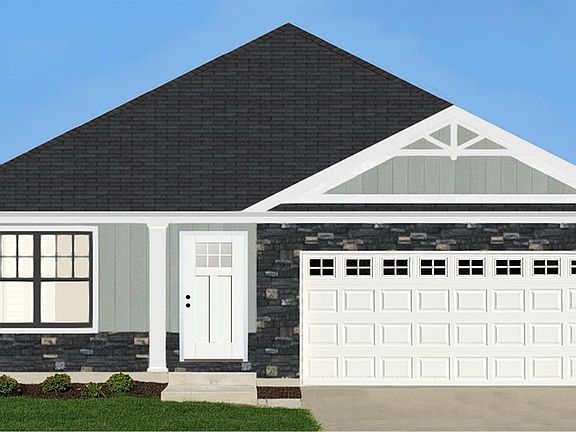 The AZALEA, featuring 3 bedrooms and 2 baths, has an open concept. Standard features include a large great room with vaulted ceiling, kitchen includes granite counters, soft close cabinet doors & dovetail drawers, crown molding, pantry, stainless steel microwave & dishwasher (options available), main bedroom w/tray ceiling, main bath, Large walk-in closet, bathrooms include quartz vanity tops, hardware & lighting options, and full 8' basement (plumbed for future bath). Exterior features include full landscape package, vinyl board & batten siding and cultured stone exterior, concrete drive and walks, covered porch, patio or deck (specific to plan).