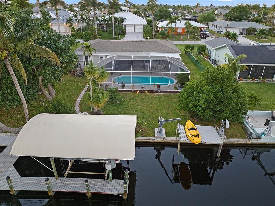 WOW, prepare to be AMAZED by this beautifully updated SAILBOAT GULF ACCESS home in South Cape! Walk in front door to an OPEN and BRIGHT living area and an IMMEDIATE VIEW to the Lanai, Pool and CANAL through the TRIPLE SLIDER. To the left you will find a WINE BAR and the TWO EN-SUITE bedrooms. The Primary Bedroom has a LANAI DOOR and Bathroom has CUSTOM TILE SHOWER with DUAL SHOWER HEADS, 80" Vanity with TWO SINKS and QUARTZ. To the right is the ALL NEW kitchen with plenty of storage, GRANITE and STAINLESS. The 3rd bedroom and POOL BATH with CURVED TUB complete the indoor space. Step outside the bedroom or bathroom door to a PATIO with an OUTDOOR SHOWER. Stroll from there through your LOVELY backyard with FRUIT TREES, to the DOCKSIDE DECK and you'll see a CUSTOM KAYAK LAUNCH, a 7500# BOAT LIFT w/COVER and CAPTAINS WALK with NEW COMPOSITE. Back up to the Lanai to ENTERTAIN! The large COVERED AREA is an extension to your living space and has an OUTDOOR BAR and CUSTOM LIGHTING. The Pool and Deck have been RESURFACED (new pump motor and heater too). And you can even RELAX in the POOL while doing loads of laundry. 1 YR HOME WARRANTY too. OFFER on this FABULOUS HOME to ENJOY or for a GREAT RENTAL!