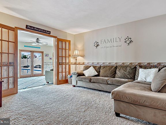 Gorgeous country paradise! Meticulously maintained home w/private rear yard; all improved w/tiled sunroom w/circular windows & view of private low maintenance salt water in ground pool and beach-style sitting area and hot tub. All pool and hot tub equipment convey. It only gets better...the inside has beautiful master suite w/expansive private bath; 2-add'l BR's/1st flr; formal LR, oak cabinetry w/eat-in bar area; separate dining room with custom hardwood floors; basement is fully finished with family room for entertaining and possible 4th BR. 100% USDA eligible, this won't last!