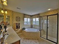 Opening onto the two-story foyer, behind double French doors, is a secluded private study/5th bedroom with attached full bath. The living room and dining room can be divided by optional stately round columns that separate the space while preserving its integrity. A spacious morning room overlooks the wooded backyard and a beautiful enclosed concrete patio with fancy-stone studded pillars. Attractive hardwood floors adore the entrance walkway, kitchen and morning rooms. There are 9' ceilings throughout the first floor. The kitchen and full granite dinette are centrally located to the generous family room. The grand 39"x99" six-seater kitchen island with an upscale Cambria quartz countertop adds grandeur and additional storage space, while providing a superb spotlight to host your special events & an intimate family dining experience. A spacious enclosed concrete patio welcomes you to experience a breathtaking view of a beautiful meadowed and wooded backyard. The patio's "fancy-stone" piers is sure to add elegance to your backyard experience. Upstairs, the luxury owner's suite is appointed with large closets, a corner jacuzzi with upscale tile sides, separate shower and dual vanities. The Courtland includes four bedrooms, a two-car garage overlooking a concrete driveway, unfinished lower level plus a convenient second floor laundry. A fully finished elegantly laid out basement with a home theater, dry counter bar and a bedroom with full bath including a cozy sauna and a private massage parlor space just puts this estate home a notch above the edge!