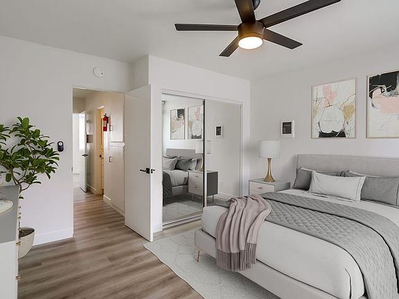 We are thrilled to offer this newly renovated 2 bedroom townhouse in which no stone was left unturned. It is deceiving how spacious it is until you step inside. Enter to the first floor living room with natural light, new flooring, and warm modern paint color carried throughout the home. There is a wall A/C unit. This entire unit has a very cohesive, modern feel different from many of the other beach properties on the market. Continue past the living room to an eating area and the kitchen. The home offers a nice area that separates the space without walls. There is a half guest bathroom on the 1st floor. The kitchen meets your cooking needs with granite counters, abundant cabinetry and a full stainless steel appliance package which includes a gas range/oven, dishwasher, microwave and side by side refrigerator. Step outside the patio door to a private patio with storage shed. The second floor offers 2 bedrooms and plenty of storage space in the hall between the rooms. Both bedrooms offer mirrored wardrobe closets, contemporary ceiling fans and comfortably fit all standard bed sizes. The bathroom is complete with granite counters and full tub/shower enclosure. In unit laundry at the beach is an added feature you won't ever want to live without. **Water, trash and one parking space all included** Support local business as you embrace the beach life walking to coffee shops, restaurants and local pubs. FWY close to 8 and 5. If beach life is calling you this town home offers everything you need in one place. DO NOT MISS THE OPPORTUNITY TO CALL THIS HOME! Say Yes to the town home and sign a lease by June 30th and $500.00 of 2nd month rent.