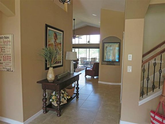 This one-owner home on a premium pond, culdesac lot is bursting w/ quality & pride of ownership. Leaded glass entry doors lead to an open floor plan, soaring ceilings, arches, pillars & more. Formal LR/DR is on foyer right; kitchen w/ dinette is on left; FR & den straight ahead. Stairway, accented w/ black metal balustrades, leads to bonus room. Ceramic tile flows thru main areas w/ neutral carpet in BDRMs & bonus room. The large under-truss screened lanai has ceiling fans, TV & outdoor speaker. Owners love the pristine pond/ conservation view that makes Nature-watching one of their favorite pastimes. The upgrade landscape is enclosed by a black wrought-iron style fence. At the heart of the home is the handsome kitchen & FR w/ upgrade cabinetry, granite counters, extra lighting w/ pendants over the snack bar, big center island, wine rack & planning desk. A walk in pantry adds storage w/ a utility room close by. You'll find new ext/ int paint plus new wood trim around all the windows & new hardwood flooring in the den w/ Fr door entry. Surround sound & a 6 zone stereo system offer easy listening. The downstairs M Suite has a lovely accent wall & a wide pond view. Bath vanity has granite counter w/ double sinks plus there's a garden tub, big shower & "to-die-for" walk in closet. Lots of architectural details lend a luxury touch. The upstairs bonus room is ideal flex space w/ BDRM, full bath & generous living area. The owners love their quiet "Country Walk" lifestyle & are sure that you will, too!