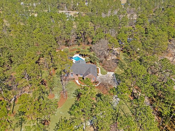 Step into the peaceful retreat of Snake Nation Road, a 5-acre private estate where relaxation & charm blend effortlessly. The home, surrounded by mature trees and lush landscaping, exudes peace & timeless charm. From the moment you pull up to the brick-columned entrance, you'll know this isn't just a house—it's a sanctuary. The open-concept living, dining, & breakfast areas are drenched in natural light & boast a custom brick decorative fireplace, creating a cozy yet refined atmosphere. This home's layout seamlessly blends comfort with practicality. With three generously sized bedrooms on the main floor & a large, inviting fourth bedroom upstairs, there's plenty of space for everyone. The primary suite feels like a private retreat, featuring a luxurious jetted tub, tiled shower, & dual vanities. You can step through the private door to enjoy the peaceful back porch, while the custom closet system keeps everything beautifully organized. Indulge in a resort-style backyard, featuring a completely renovated pool with a pool deck, new liner, and stunning outdoor lighting that makes evening swims a magical experience. The yard is fully fenced w/ 2 gates. The firepit calls for s'mores nights under the stars, while the stocked pond, dock, & surrounding wildlife offer a peaceful escape. The outbuilding is equally impressive— this 1,344-square-foot modern studio is a versatile space ready to meet your needs. Whether you're an artist, hobbyist, or need a workshop, it's fully equipped with HVAC, high ceilings, custom finishes, 200amp electrical service, roll up door, & a 16X30 covered patio. Walk the trail, fish in the stocked pond, or simply enjoy the peaceful surroundings. And when you're ready for a night out, you're minutes from Valdosta's conveniences! Every so often, a property comes along that feels like it was made for you. If you're looking for a home that embraces both adventure & serenity & makes every day feels special, this place is for you! Ready to make it yours?
