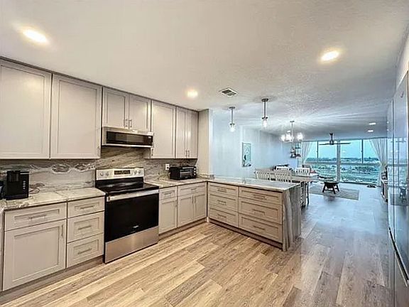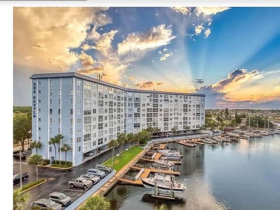 Live the Florida waterfront lifestyle you"ve always dreamed of in this beautiful 1-bedroom, 1-bath condo with a DEEDED BOAT SLIP and direct Gulf access, no bridges and deep water! Perfectly positioned on the 7th floor, this light and bright unit offers unobstructed views of the wide canal leading straight to the Gulf, where you can watch boats pass by or catch a glimpse of the sunset reflecting off the water. Step inside and you"ll find a comfortable open-concept floor plan with floor-to-ceiling windows that fill the space with natural light. The interior features neutral, transitional tones that complement the coastal surroundings, and a modern kitchen with newer stainless-steel appliances and granite waterfall countertops, vinyl plank flooring, beautifully remodeled kitchen and bathroom, ideal for easy entertaining or quiet evenings in. Spend your days relaxing by the heated waterfront pool, grilling with friends at the community gazebo, or enjoying a little friendly competition on the shuffleboard courts. Fishing spots and marina access are right at your fingertips, and for just $200/year, you can join the exclusive Gulf Harbors Beach Club, offering private beach access with powdery white sand, turquoise water, and breathtaking sunsets. The monthly condo fee covers cable, internet, water, sewer, trash, and pest control everything you need for a maintenance-free lifestyle. You'll also have plenty of guest parking for days spent out on the boat. Located just minutes from downtown New Port Richeys vibrant dining, shopping, and entertainment scene, and close to medical facilities, marinas, and beaches, this location truly has it all. Whether you're a snowbird looking for a sunny retreat, a boater ready to live the waterfront life, or simply seeking a peaceful full-time home, this condo is your gateway to Florida living at its finest
