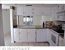 IT’S ALL ABOUT THE BEACH!! Charming 2BR/2BA villa style condo. Owner option to join Gulf Harbors private Clubhouse and Beach Club (within a mile) with beautiful white sand beach. Newer kitchen with ample white wood cabinetry, new sink & faucet, glass top range, pantry, eat–in area, & breakfast bar. Spacious open LR and DR with cathedral ceilings, sky light. Glass door/wall with transom windows leads to light and airy Florida room (approx. 11x13) with closet and built-in sink(cold water only)-great for office or reading room. Master suite with large walk-in cedar closet, two vanities-his and her sinks, walk-in shower. New toilets. Master suite has large floor to ceiling bay window and will accommodate a king size bed. Inside laundry. One car Carport with outside storage closet and extra assigned parking space. Two pets permitted up to 20 lbs. No age restrictions. Community pool. Convenient to shopping. Annual Beach Club fees are $144 (2011). Clubhouse annual fee is currently $40.