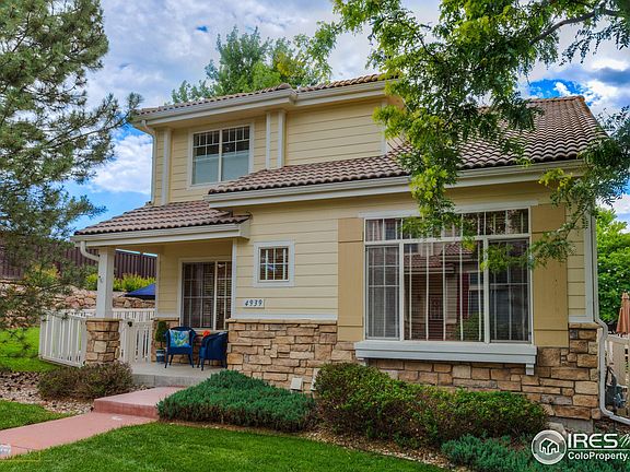 Broadlands Cottages offers easy low maintenance living in detached homes. Great location adjacent to the golf course within the Broadlands community and its amenities, clubhouse, basketball court and pool, with beautiful trails, parks and mountain views from your doorstep along with plentiful shopping and dining nearby (its the perfect mix of town and country) Boulder, Denver and DIA all within 30 min. The Cottages offers a well-kept neighborhood, established landscaping, reasonable fees compared to most townhomes or condos, and an additional pool complex for Cottages exclusive use. Along Pasadena way, end of cul-de-sac homes rarely become available. Well-screened from road views, they offer wide patios facing HOA maintained landscaping surrounded by mature trees for secluded al fresco dining, and are an easy walk to the pool. Covered porch opens to bright, airy living space with vaulted ceiling, warm wood floors and an upgraded gas fireplace. Separate dining room, spacious well-equipped kitchen, tons of counter space, dining/breakfast nook with doors to patterned concrete patio. Newly upgraded fixtures/fittings and kitchen appliances including double oven and fridge with internal water and ice, carpets, fresh paint and updated bathrooms including primary with walk-in shower show this as a well-cared for home. New furnace, a/c, water heater in fall 2022 with energy efficient Nest thermostats. Adding to feeling of light and space, galleried extended loft space opens to 3 upstairs bedrooms/bathrooms. Bright larger primary with ensuite and walk-in closet. 3rd bedroom arranged as guest/playroom leading to additional loft/flex space for office or workout room. Unfinished, plumbed basement is included for extra storage or creativity.