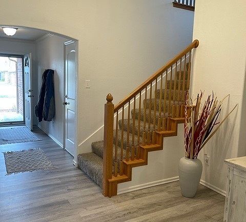 New, neutral interior paint 2021. New wood laminate flooring in living & entry way. Open living features large bay windows, allowing lots of natural light, tall ceilings & gas logs fireplace. Open kitchen w/granite countertops, breakfast bar, & formal dining room. Split plan -large master down w/private bath, jetted tub & separate shower, and double sinks. Spacious 2nd & 3rd beds all down. Huge game room up! Neighborhood trails, pool, park/playground, splashpad & pond. Roof to be replaced prior to closing