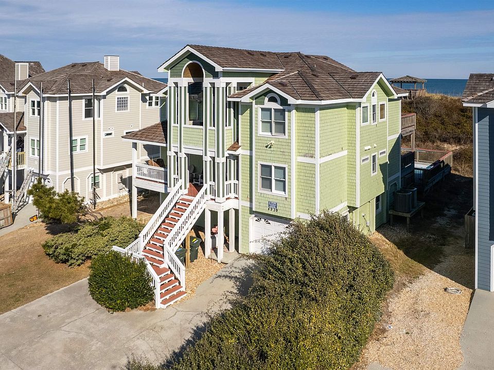A rare opportunity to own an eight-bedroom oceanfront property in the heart of Nags Head! This one has a long-term, proven rental history and is in demand year after year. Located close to some of the best shops and dining the Outer Banks has to offer. With sixty feet of ocean frontage, the views will never disappoint. The private beach walkway and dune top gazebo are the perfect place to enjoy the sunrise with your coffee or a cold beverage on a hot day. This lovely home has the ideal floor plan that perfectly accommodates a large group. From the mid-level entrance, the spacious foyer welcomes you into the mid-level entertainment room. The mid-level has two ensuites and two bedrooms that share a full bathroom. The entertainment room is perfect for games or movies and will give everyone space. The top level of the home boasts sweeping views of the Atlantic Ocean! The cathedral ceilings and open great room are bright and airy, giving the entire house a calming coastal feel. You will also find a large sun deck overlooking the ocean and the private swimming pool. There are also two ensuites on the top level, and both are well-appointed. The home's ground level features a game room and two more bedrooms that share a bathroom, a sauna, and a storage area. The new plank flooring throughout the entire home is stunning! The cedar plank roof was replaced in 2023.