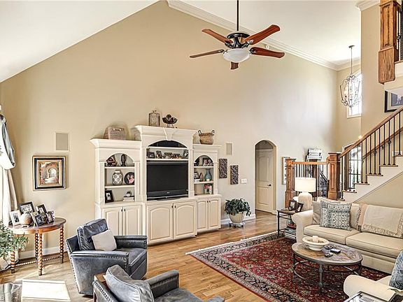 - Ceiling Fan(s), Wet Bar, Kitchen Island, Pantry, Vaulted Ceiling(s), Cable, Built-in Shelves, Garage Door Opener(s), Gas Logs, Dead Bolt(s), Dryer Connection, Laundry Room - Main Level, Separate Shower, Garden Tub, Great Room, Alarm and/or Security System, Solid Surface Counter, Arched Doorways