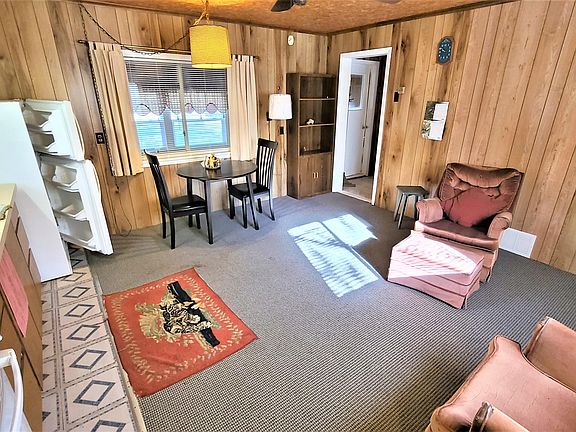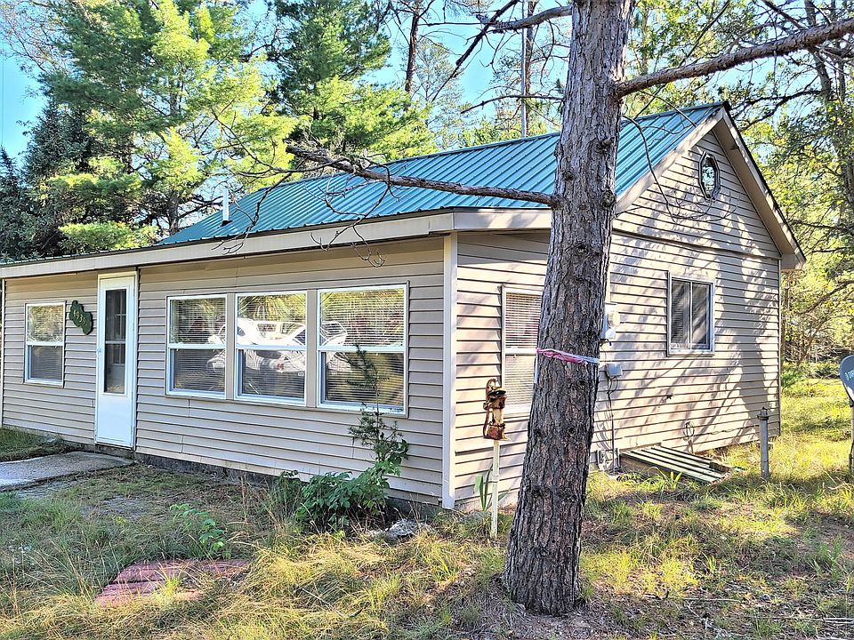 Cute cabin in the woods with 1 bedroom and 1 bathroom. This cabin features an open living space with wall furnace and views of the wildlife. The front porch can be used for extra sleeping area/possible second bedroom in the future. The yard is large and open with a nice firepit and a 16x24 garage for extra storage. Perfect for recreational use with Loop 9 trail nearby and 100s of acres of state land across the street.