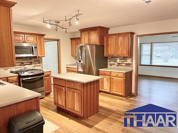 Clean as a whistle this lovely brick ranch has a beautiful new kitchen with Corian counters, island, stainless appliances & great gas range for serious chefs! Gas log fireplace, luxury vinyl flooring & new carpets. Large custom walk- in shower. Oversized 2 + garage, high efficiency furnace only 5 yrs old, and fenced in rear 3/4 acre lot! Covered patio for relaxing, extra large shed & extra building. Windows everywhere for natural light, & sunroom or office. South just off of Rt 63. Call us today for private showing! This one will sell quickly!!