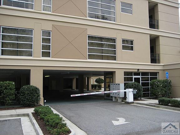 Highly desirable location --The Overlook on Baxter. Across street from UGA campus and short walk to downtown Athens and the UGA football stadium. Third Floor condo. Lots of features including 10' ceilings, polished concrete flooring in common area, granite counter tops in kitchen and baths. Kitchen with stainless steel appliances. Great Room with electric fireplace. Very open floor plan. Improvements include: Elevator access to the condo. Assigned one car covered parking. Nice covered porch looking toward stadium and downtown. Storage closet on covered porch. Currently leased at 1650 through July, 2021. . Great condo for GAME Day Buyers.