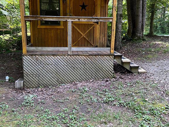 Also includes a she shed on property with new futon and half bath; property has a fenced vegetable garden. This property sits on 5 lots and back has trees. Less than 1/10th of miles, over the hill, to a ramp and overlook Beech Grove dock (wolf creek)