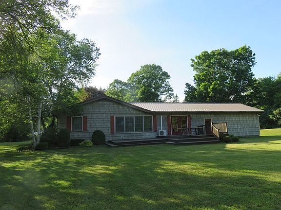 FIRST TIME ON THE MARKET FOR THIS RARE PROPERTY OFFERING! One family cared for this beautiful 1873 SF, 4-5 bedroom, 3 bathroom ranch home on 16 acres. Many nice features including an open floor plan, beautiful masonry stone, gas fireplace, large windows w/views throughout, beamed ceiling. Large country kitchen has plenty of storage & counter space, breakfast bar, all appliances, french doors to large deck w/views. 1st floor laundry w/new Washer/Dryer. Basement includes family room, bedroom, bathroom, workshop. Attached 2-car garage, detached garage, large in-ground swimming pool. All the privacy you want with 16 beautiful acres, primarily mature woods, mountain views. Little Salmon River running through the back portion of the property. Centrally located, close to stores, restaurant, post offices, churches, parks, Health Center, Salmon River School campus, athletic facilities, & arena. A home and property of this quality is rare. Buyers must be pre-qualified before Showing is scheduled